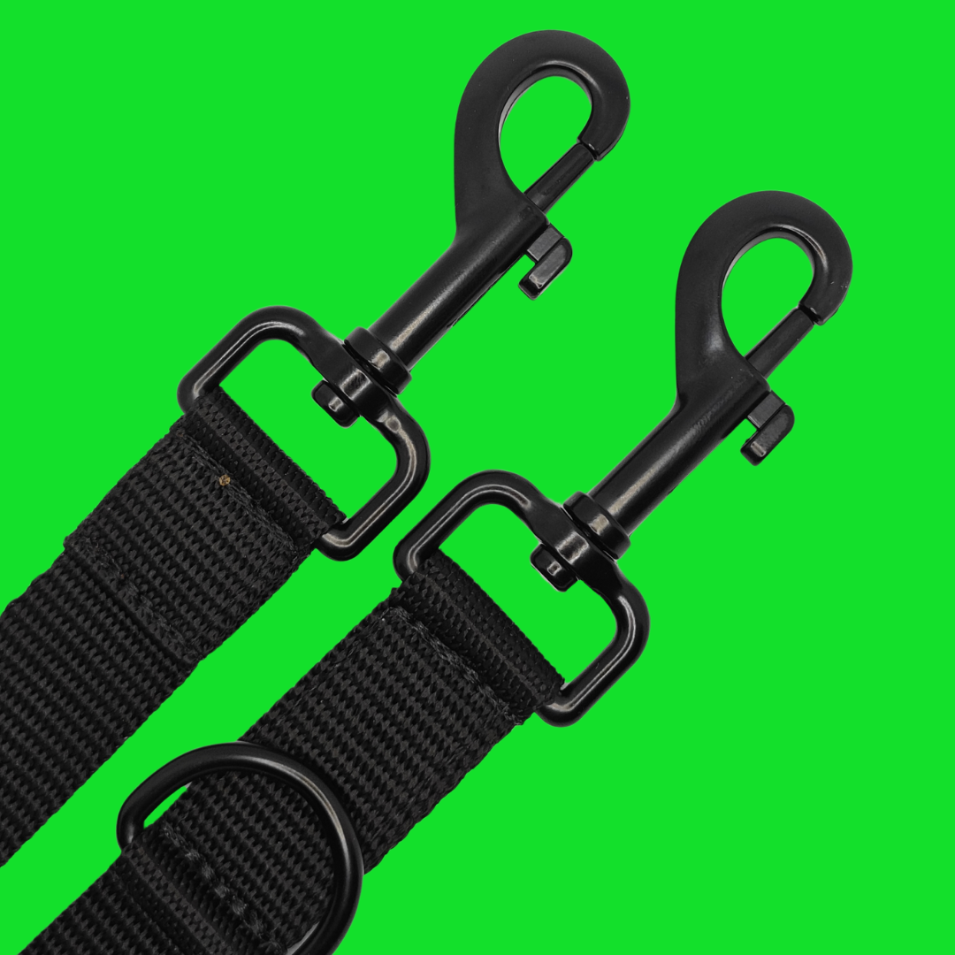 Unsere Leine aus 100% Polypropylen ist die perfekte Kombination aus Funktionalität und Design. Mit einer Breite von 2,5 cm und einer Bruchlast von 3000N ist sie extrem robust und langlebig. Die 3-fach Verstellung (Offen 2m, 1. D-Ring 1,8m, 2. D-Ring 1,4m und 3. D-Ring 1,1m) ermöglicht eine individuelle Anpassung an jede Größe und Situation. Dazu ist sie noch extrem leicht mit unter 150g. Der drehbare Karabiner aus korrosionsbeständiger Zinklegierung sorgt für sicheren Halt. Erhältlich in den gleichen Farben wie unsere beliebten Halsbänder, damit dein Hund immer im passenden Look unterwegs ist.